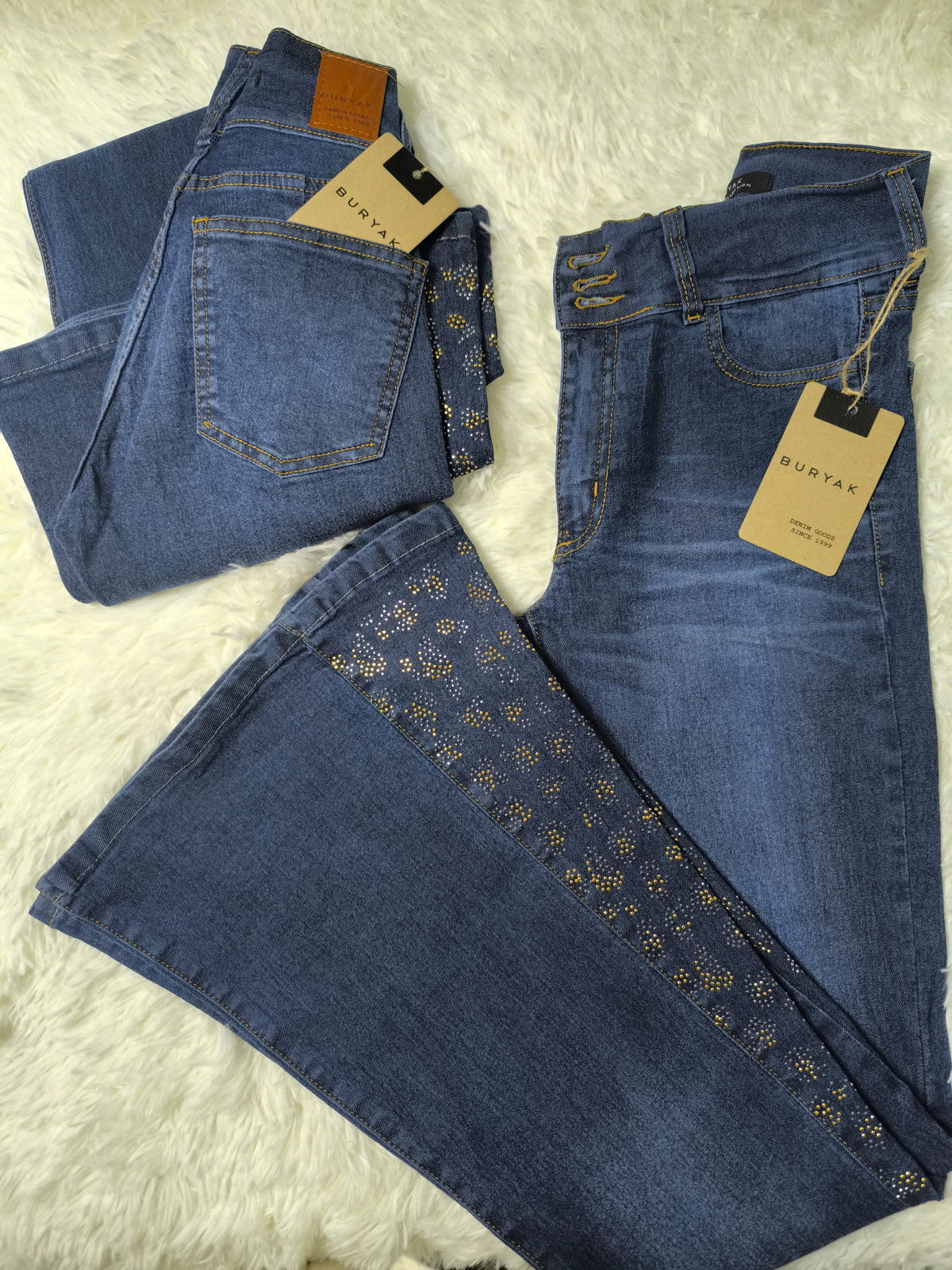 Triple botón, tiro medio alto, elástizado